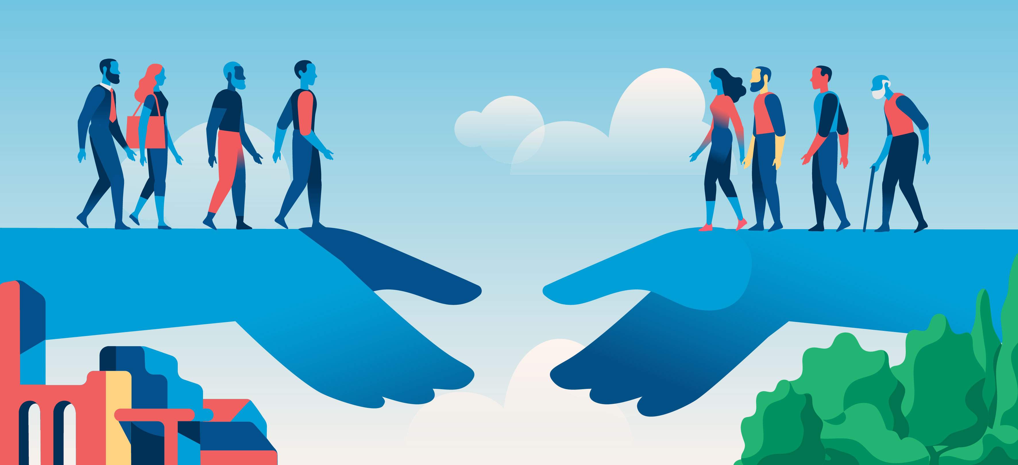 Illustration of hands reaching out to form a bridge.